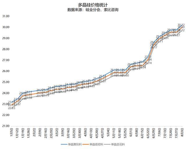 8月3日,中国有色金属工业协会硅业分会公布了太阳能级多晶硅最新价格。